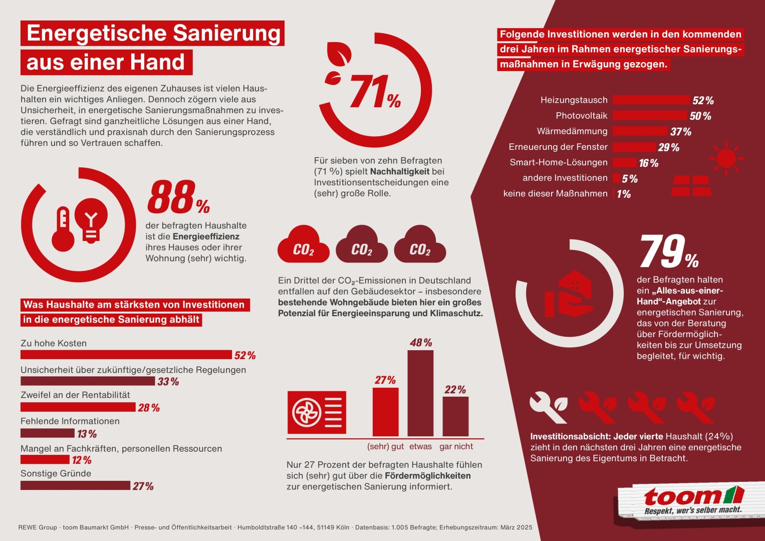 toom zeigt mit seinem Partnernetzwerk, wie energetische Sanierungen gelingen können – alltagstauglich, förderfähig und zukunftssicher. Doch damit mehr Haushalte diesen Weg gehen können, braucht es verlässliche Rahmenbedingungen: weniger Bürokratie, mehr Transparenz bei Förderprogrammen und eine konsequente politische Unterstützung. Nur wenn Wirtschaft, Politik und Verbraucher:innen an einem Strang ziehen, wird aus dem Sanierungswillen eine echte Bewegung – und aus der Energiewende gelebte Realität.
