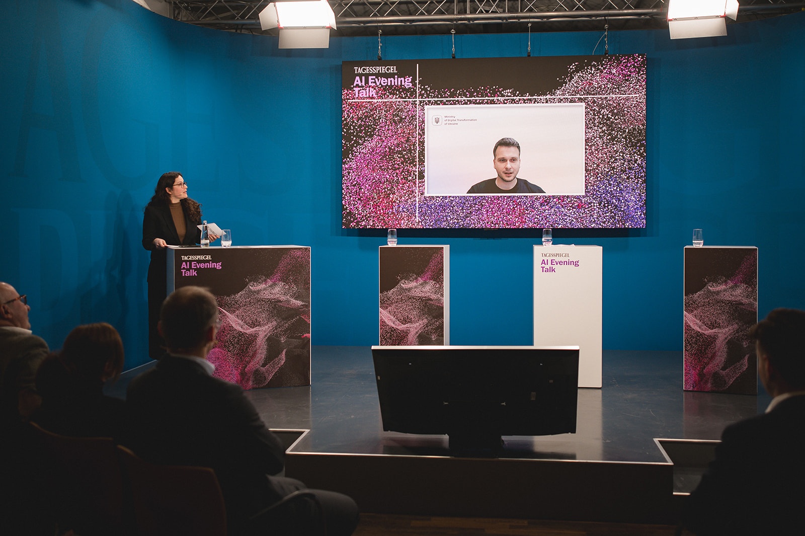 Danylo Tsvok, Chief AI Officer der Ukraine im Interview mit Tagesspiegel Background-Journalistin Alexandra Ketterer